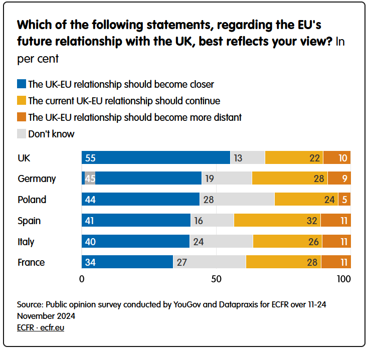 It would be one thing if the appetite for such a reset were present only on one side of the Channel, or in just one narrow segment of the political spectrum. But our poll finds a strikingly broad consensus both in the UK and in the EU that the time is ripe. In every country polled, the prevailing view is that the relationship should become closer rather than staying the same or becoming more distant.