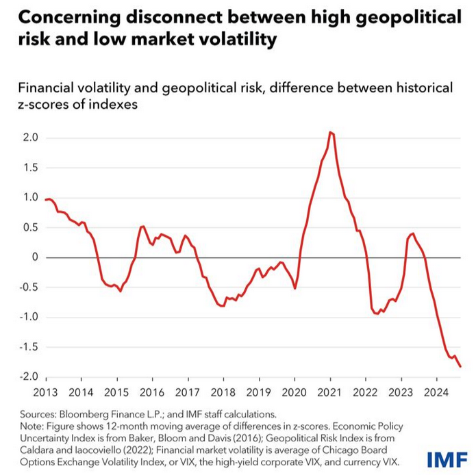 Why? Because the likelihood of a soft landing for the global economy has significantly increased. As inflation continues to decline, major central banks have started cutting interest rates. This is boosting already buoyant asset prices and keeping financial market volatility subdued.